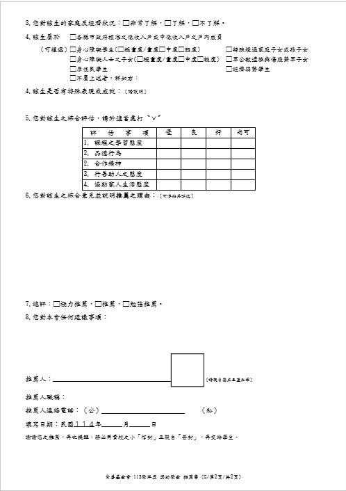 能班、建教合作班、特教班、五專生等等),其人品善良有上向心,並經班級導師或科系主任之推薦者。